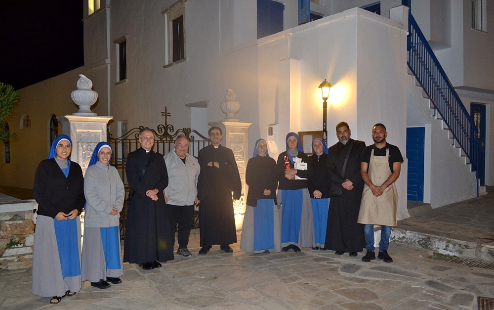 “Χθες η Εκκλησία μας έζησε στον Καθεδρικό της Ναό, με την παρουσία πλήθος πιστών μία ιστορική ημέρα. Και, εορτάζοντας την Μητέρα μας και Προστάτισσα μας Παναγία του Ροδαρίου, δεχθήκαμε από το Θεό μέσω της Παναγίας ένα πολύτιμο δώρο για την τοπική μας Εκκλησία. Υποδεχθήκαμε τρεις μοναχές του μοναχικού τάγματος των Δούλων του Κυρίου και της Παναγίας που τώρα αποτελούν μια νέα μοναχική κοινότητα που εγκαταστάθηκε στο Θεομητορικό Προσκύνημα της Αρχιεπισκοπής Νάξου-Τήνου-Άνδρου-Μυκόνου. Η Εκκλησία υποδέχθηκε με χαρά και ενθουσιασμό την Επαρχιακή τους που τις συνόδεψε και δύο άλλες αδελφές που ήρθαν να παραστούν σ’ αυτές τις όμορφες στιγμές που ζήσαμε. Δοξάσαμε τον ένα και Τριαδικό Θεό και ευχαριστήσαμε την Παναγία για την ιστορική για το μεγάλο.